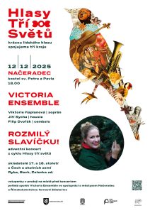 Spolek Victoria Ensemble vás všechny srdečně zve na další koncert z cyklu Hlasy tří světů, který se uskuteční 12. prosince od 18 hodin v kostele sv. Petra a Pavla v Načeradci, a který nese název „Rozmilý Slavíčku!“. Uslyšíte půvabné skladby baroka a klasicismu vázané k období Adventu a Vánoc. Ústředním tématem koncertu je česká hudba, vypravíme se ale také do okolních zemí. Sopranistka Viktorie Kaplanová, cembalista Filip Dvořák a houslista Jiří Sycha nás přenesou do starých časů skrze písně, árie a pastorely Adama Michny, Johanna Sebastiana Bacha či Jana Dismase Zelenky. Na programu nebude chybět ani věhlasný český kantor Jakub Jan Ryba, autor ikonické vánoční mše, po jehož skladbě je tento program pojmenován. Přijďte se nechat naladit na tu pravou adventní atmosféru a zaposlouchat se do umění prvotřídních hudebníků, kteří slaví úspěchy nejen na české scéně! Vstupenky v ceně 250 / 200 Kč budou k zakoupení na místě před koncertem, rezervovat si je můžete na úřadě městyse.